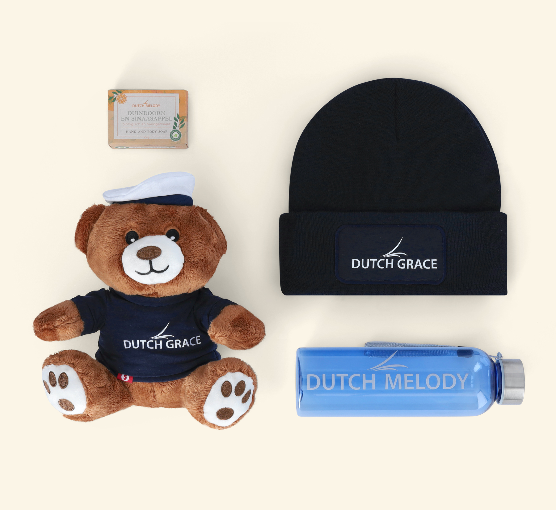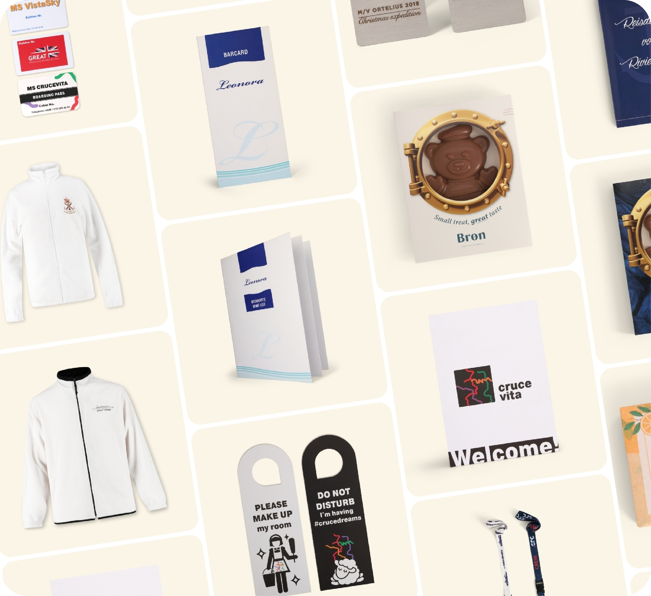 All kinds of merchandise for Shipping Company, from printed bottles to crew gear